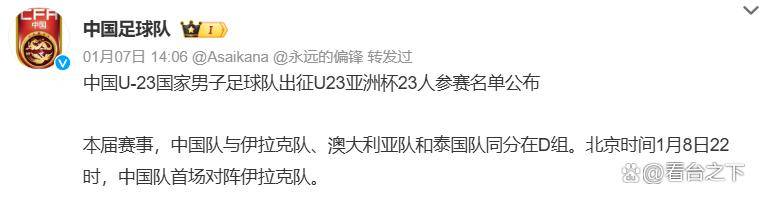历史数据不太好看,中国队之前参加五次U23亚洲杯都没小组出过线个国脚压阵,八成球员有中超经验,说不定能搞点事情。伊拉克队是上届第四名,不好打,但日本队的比赛已经证明,亚洲足球没有绝对弱旅,拼就完了。