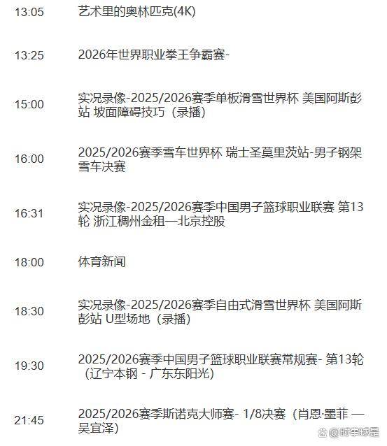 这场比赛将于北京时间1月11日19:30(当地时间14:30)开球。参考首轮的转播情况,中央电视台预计将继续对本场比赛进行现场直播。然而,考虑到同一时间段还有2025/26赛季CBA联赛常规赛以及2025/2026赛季中国排球超级联赛等赛事,这无疑给广大球迷和央视的转播安排带来了一定的挑战。