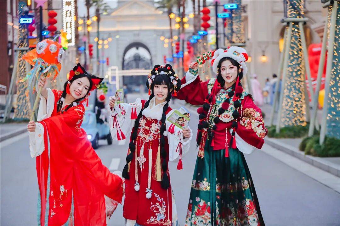 “财神巡游,福礼相送”互动活动,同样收获了游客喜爱,身着大红传统服饰、头戴财神帽的“财神”穿梭在购物村各处,手中捧着新春福袋,随机向游客派发新春好礼,一句句“马年大吉”“财源广进”的祝福暖心传递,欢声笑语间,将新春的喜悦送到了每一位游客心中。