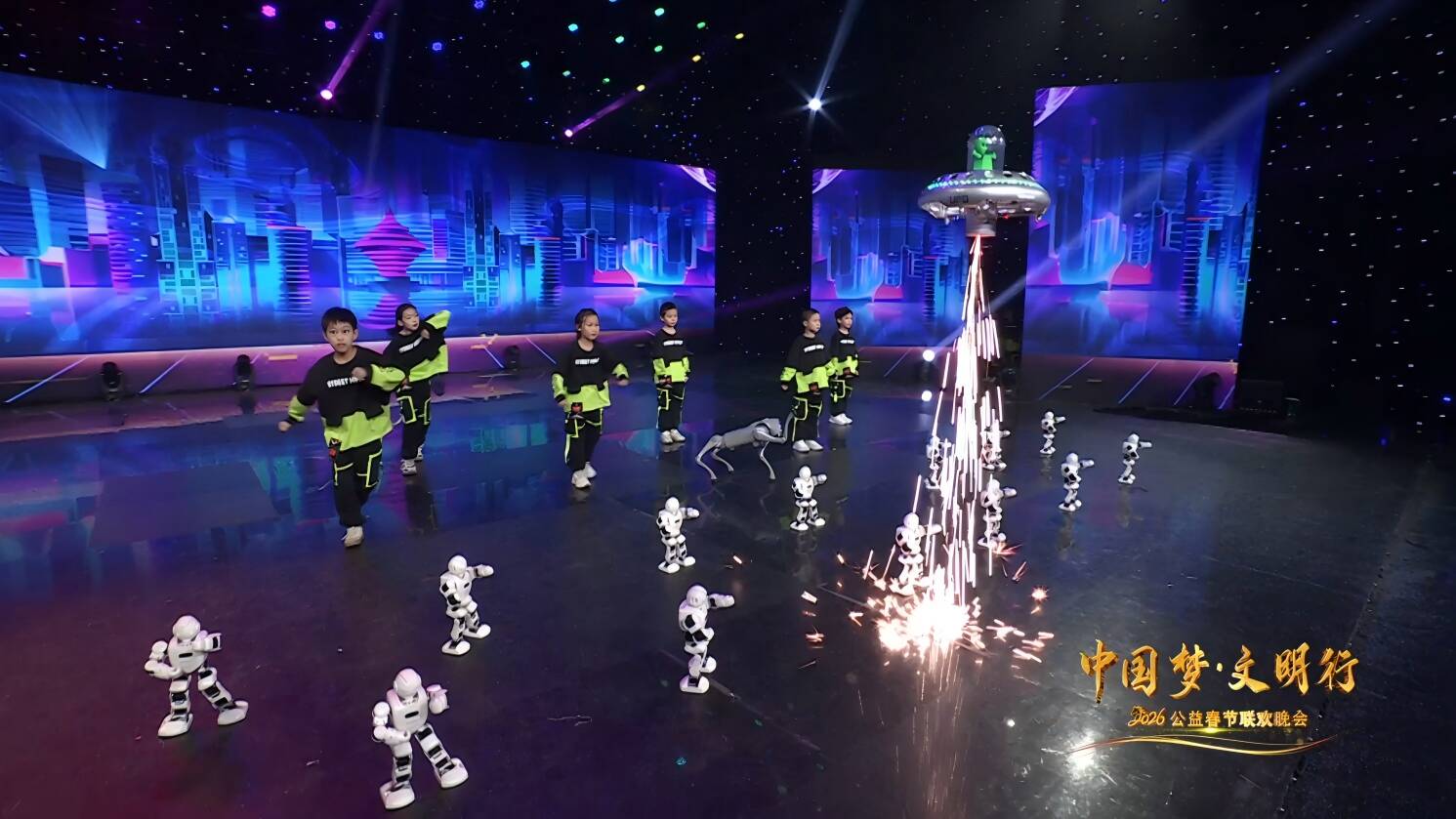 ▲街舞与科技《The show》巧思创意传统与未来的隔空对话,将蓬勃的少年朝气与前沿的人工智能技术精妙融合,机器人与机器狗的律动精准灵动,无人机用冷焰火绘就梦幻星河,科技之美燃动全场。