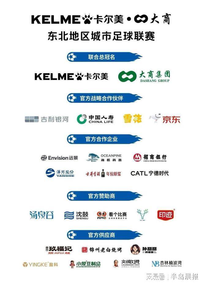 4月10日,“卡尔美·大商”东北地区城市足球联赛(简称“东北超”)在沈阳完成新一轮签约,京东集团、吉利汽车、宁德时代三家行业领军企业正式成为赛事合作伙伴。其中,京东、吉利为官方战略合作伙伴,宁德时代为官方合作企业。三大头部企业集中入局,为这项覆盖辽吉黑蒙四省区、辐射近1.2亿人口的区域足球品牌赛事注入强劲动能,标志着“东北超”市场化运营、产业化发展迈入新阶段,文体旅商深度融合之路更加坚实。
