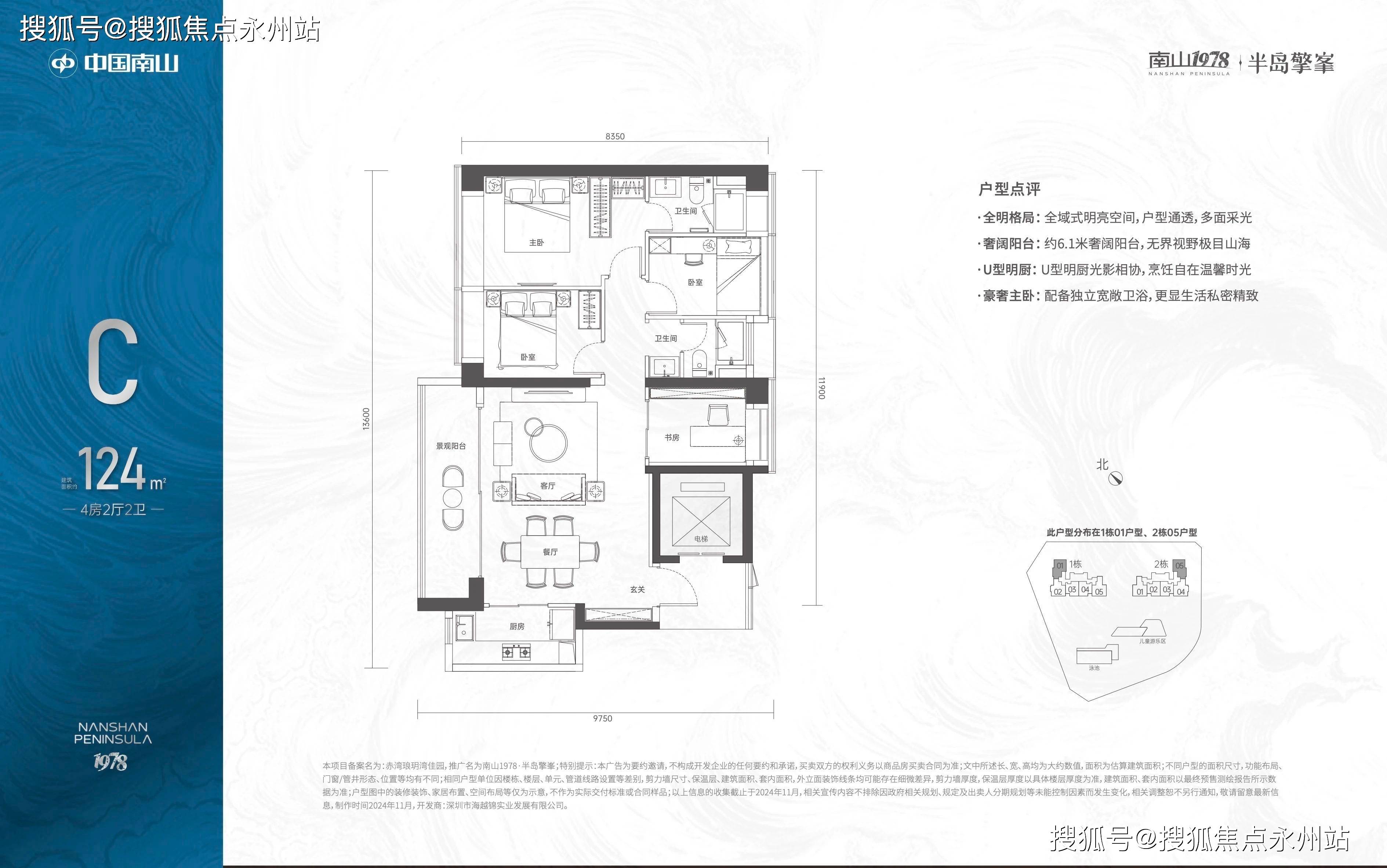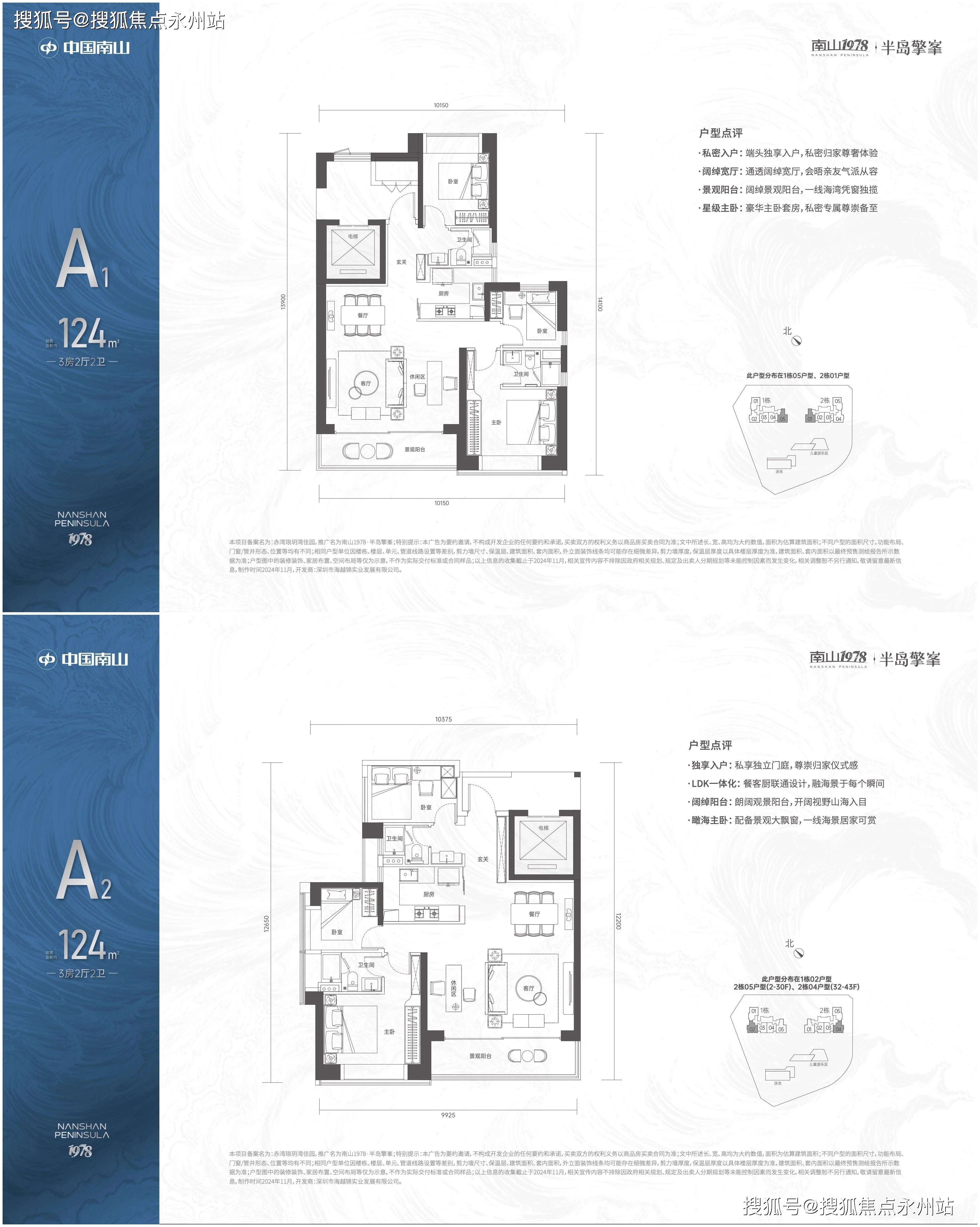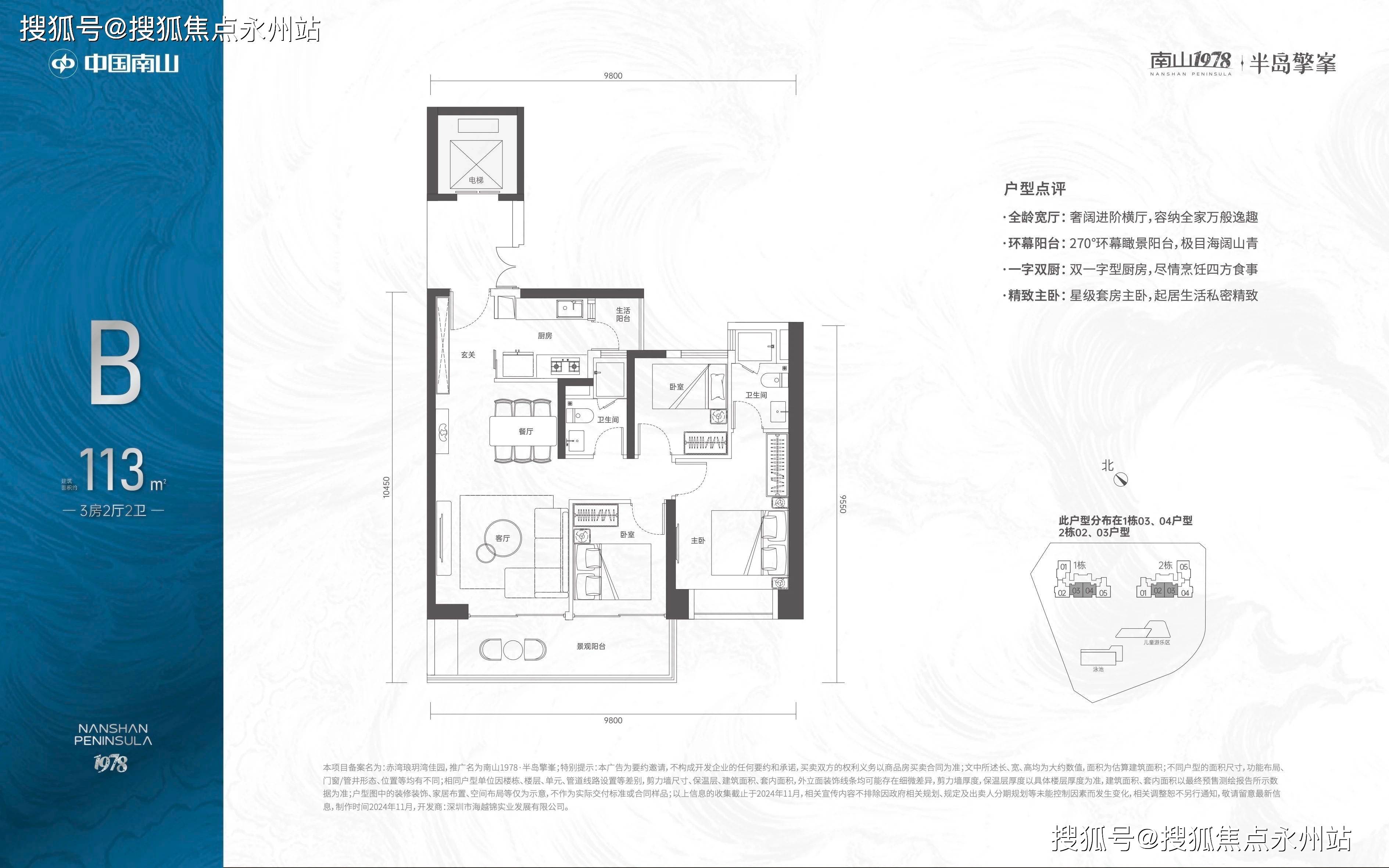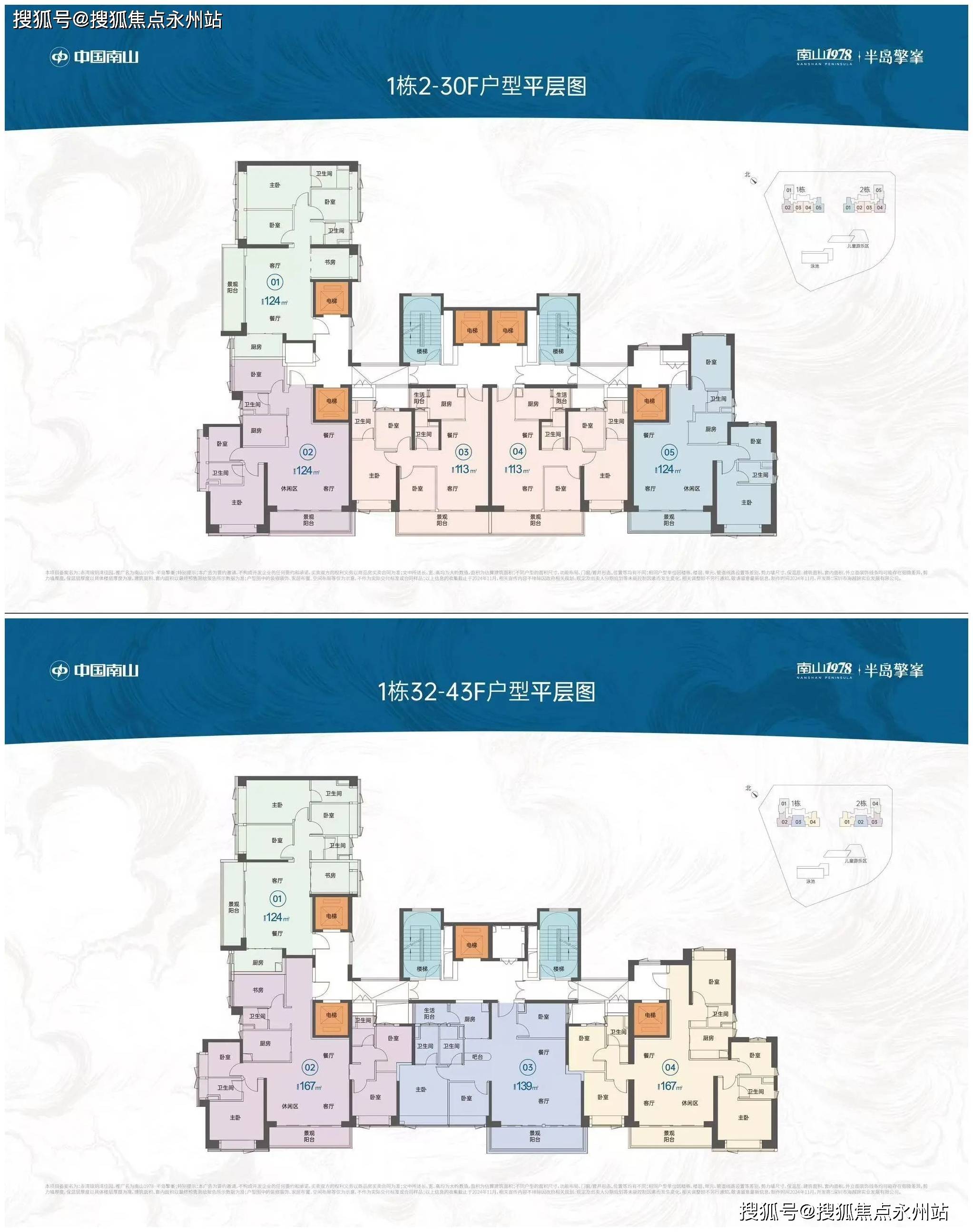 「南山1978·半岛擎峯」提供两种主力户型,分别是113㎡3房2卫和124㎡3+1房2卫,这些户型位于2至30层,均设计为全朝南向,并配备6.5米宽的宽敞阳台。