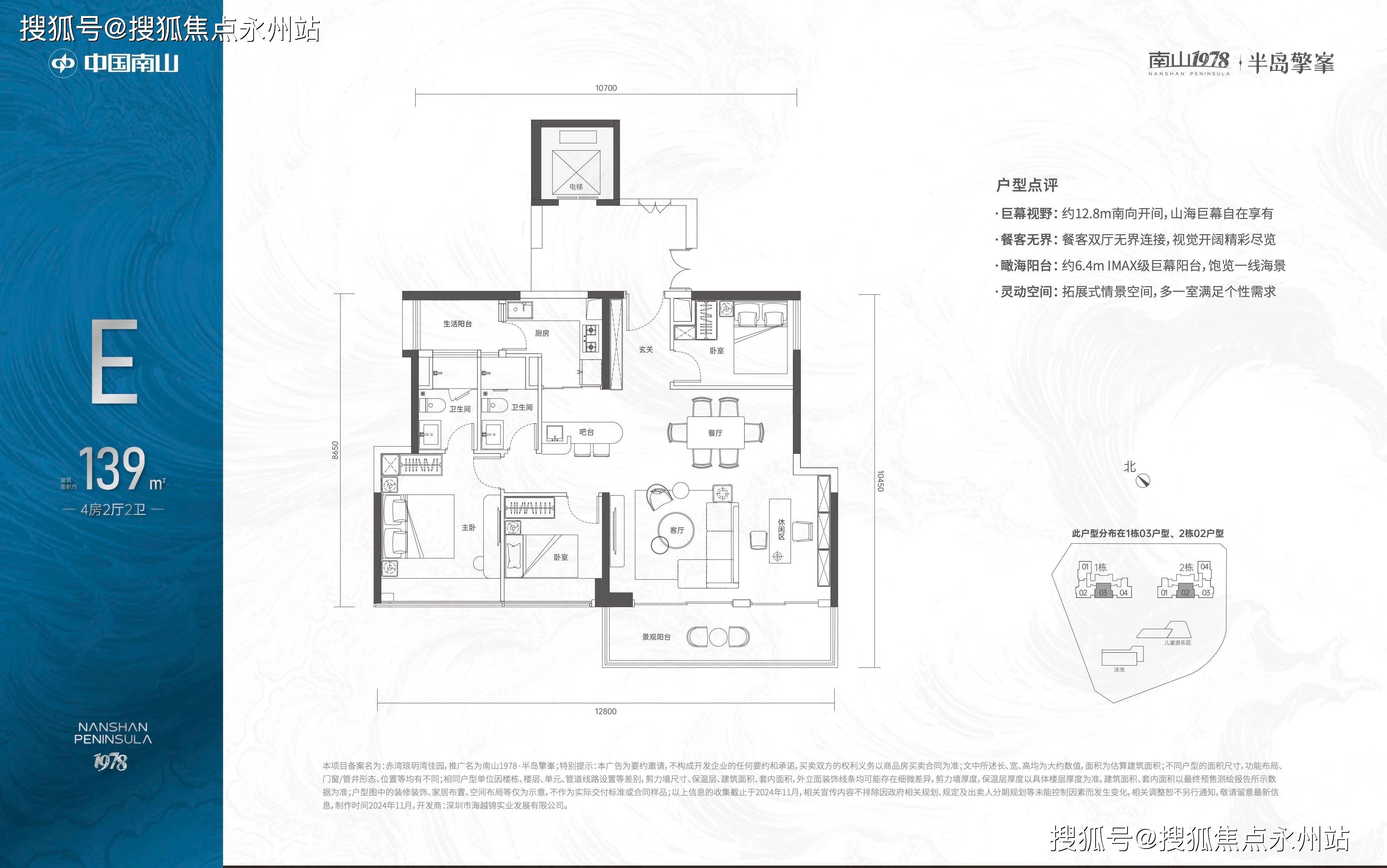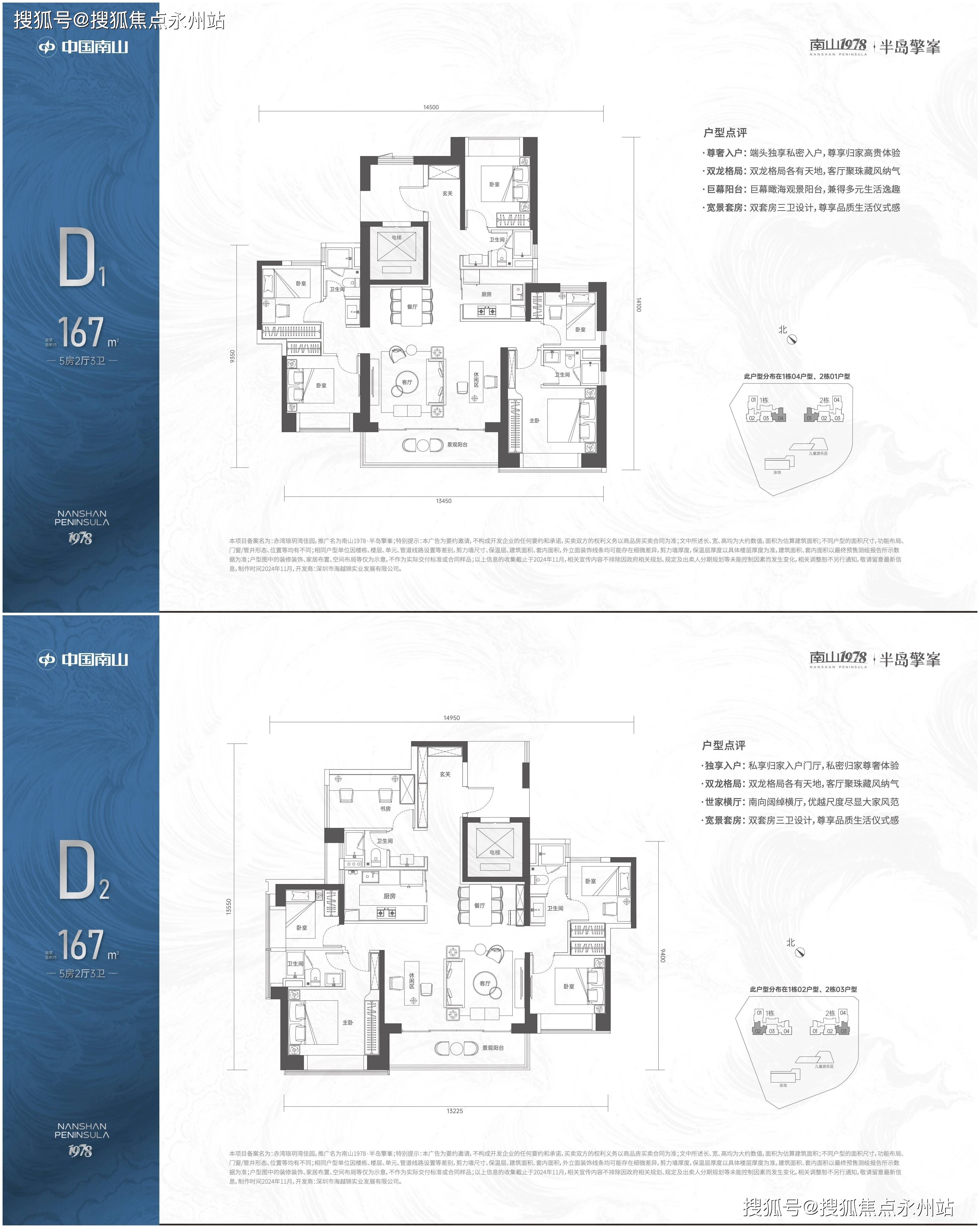 另外,139㎡4房2卫和167㎡5+1房3卫户型则位于32至43层,户数有限,南向视野开阔,可观赏海景,整体居住舒适度高,高区景观无遮挡。