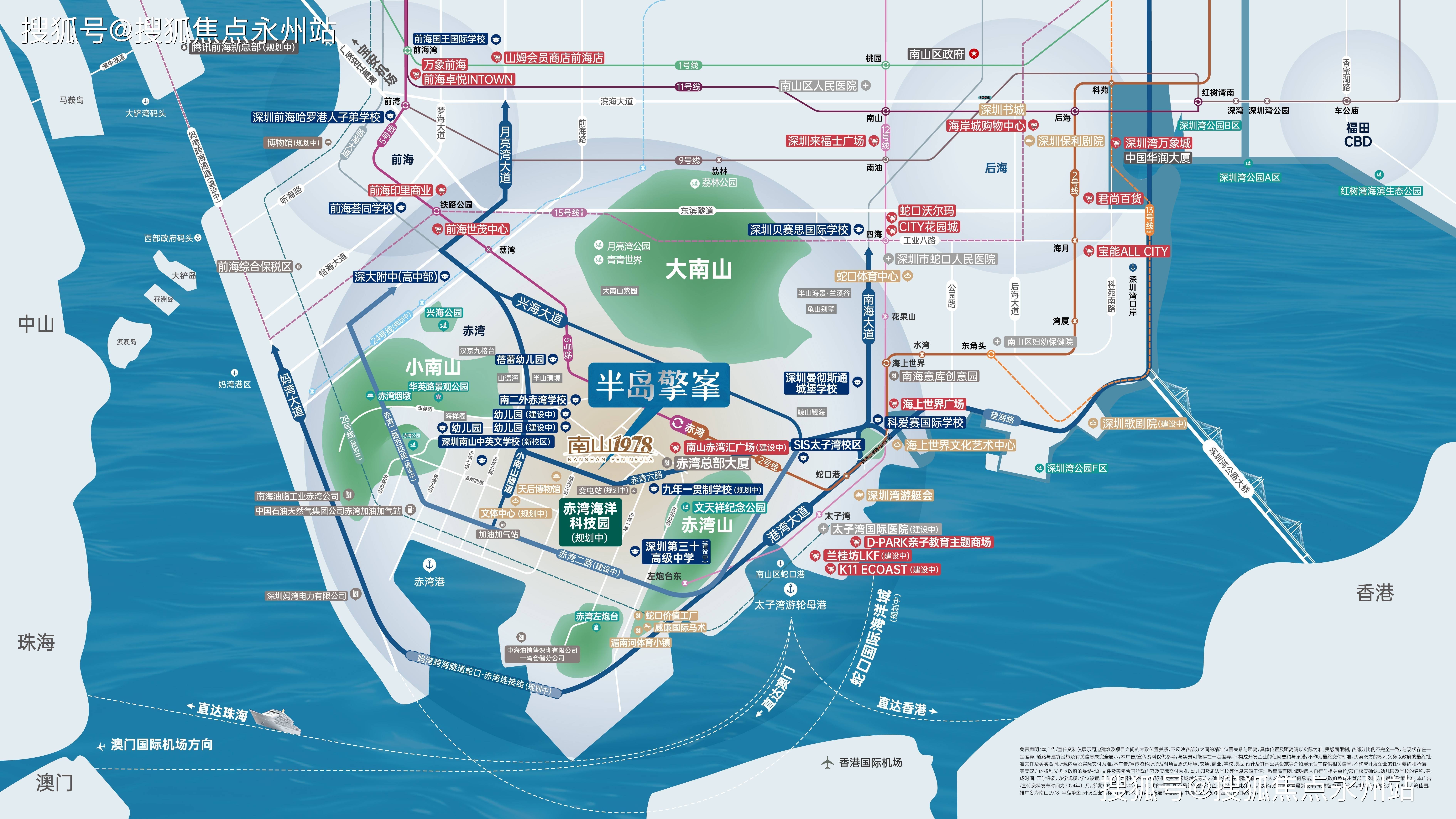 项目紧邻地铁2号线米,可快速到达前海、宝中、蛇口、深圳湾等核心片区。此外,项目周边还有多条干道和规划中的隧道,如兴海大道、南海大道、望海路、妈湾跨海隧道(建设中)等,多维路网交织,让出行变得更加便捷。(深圳南山1978半岛擎峯售楼处电话:)